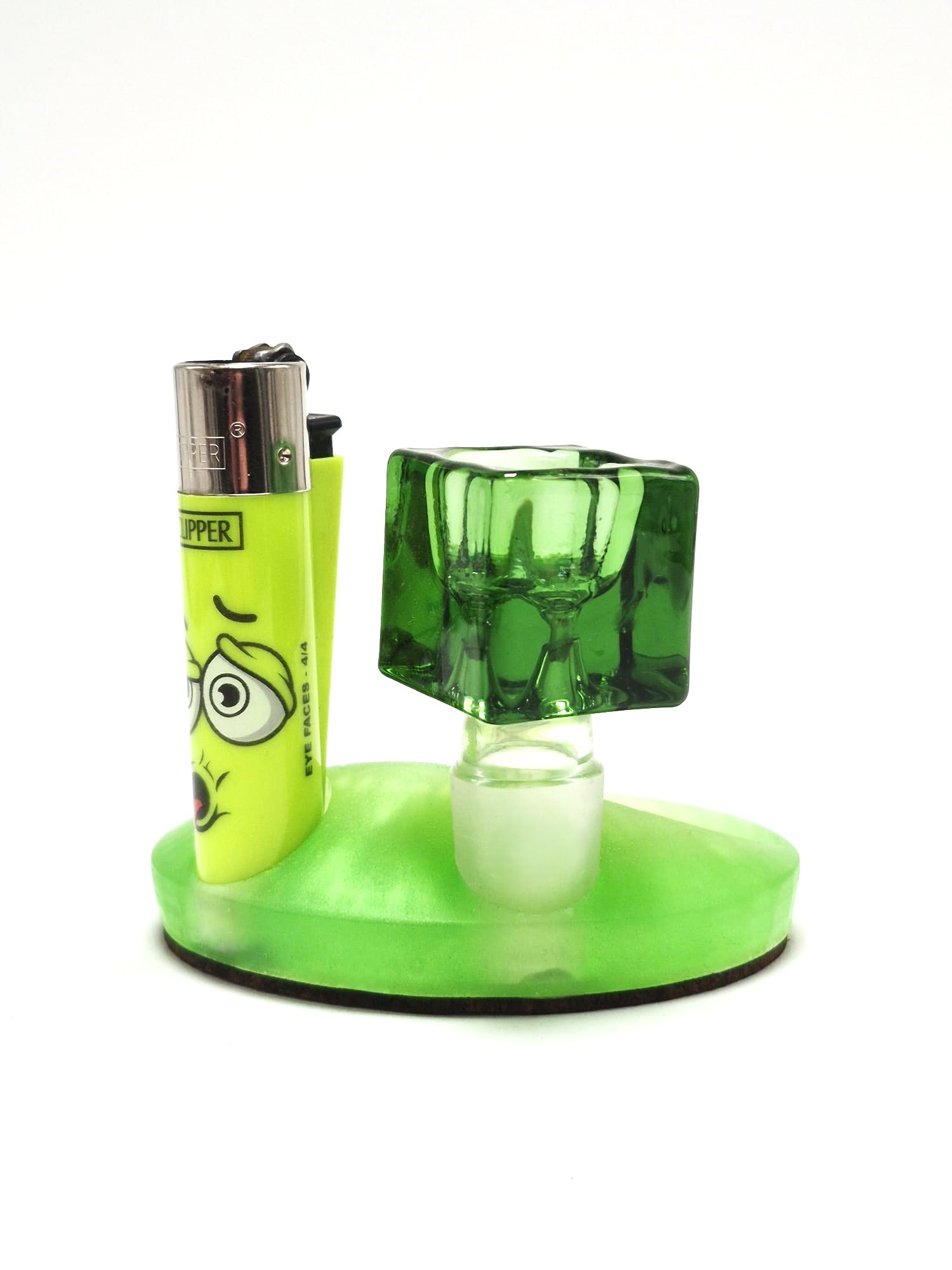 Er hält deinen Bongkopf sicher – wahlweise in 14 mm oder 18 mm Ausführung – und bietet zusätzlich Platz für dein Clipper-Feuerzeug.